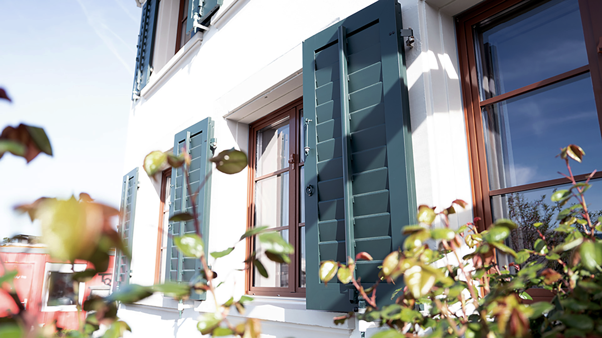 Unsere Fensterläden bieten robusten Schutz und schaffen durch Schweizer Qualität eine angenehme Atmosphäre – vom ersten Sonnenstrahl bis zur Abenddämmerung.